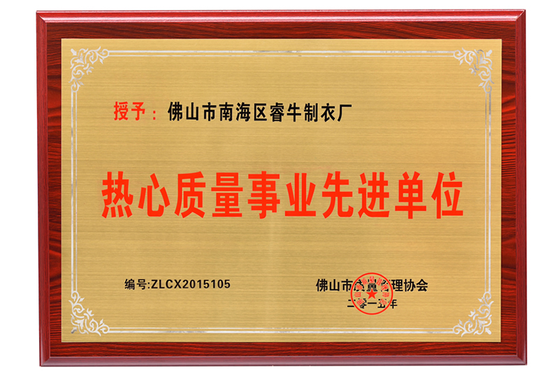 熱心質量事業(yè)先進單位 -